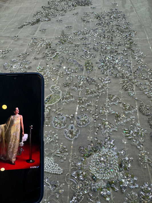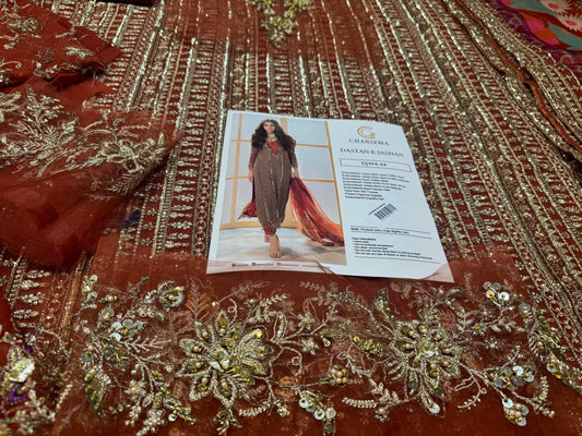 Ivory Gold Mb Elegant Pakistani Embroidered Bridal Wedding Stitched Dresses Collection 00W