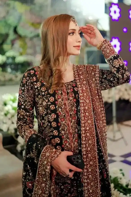 Luxury Mahira Khan Elegant Pakistani Embroidered Bridal Wedding Stitched Dresses Collection 00W