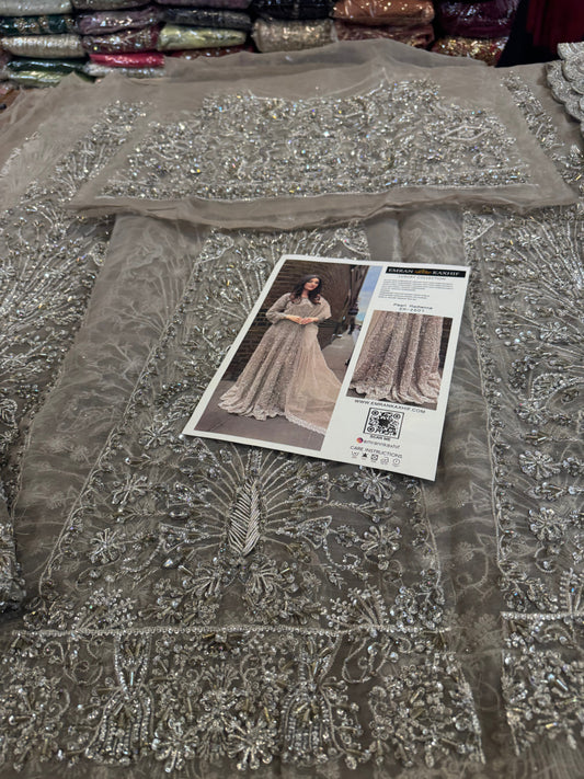 Ivory Gold Mb Elegant Pakistani Embroidered Bridal Wedding Stitched Dresses Collection 00W