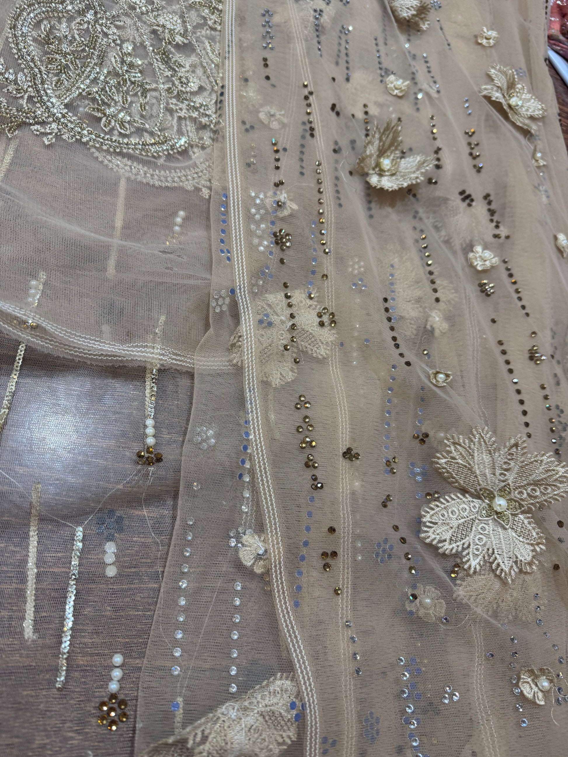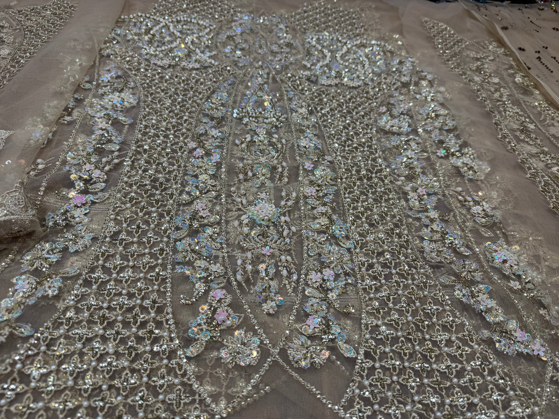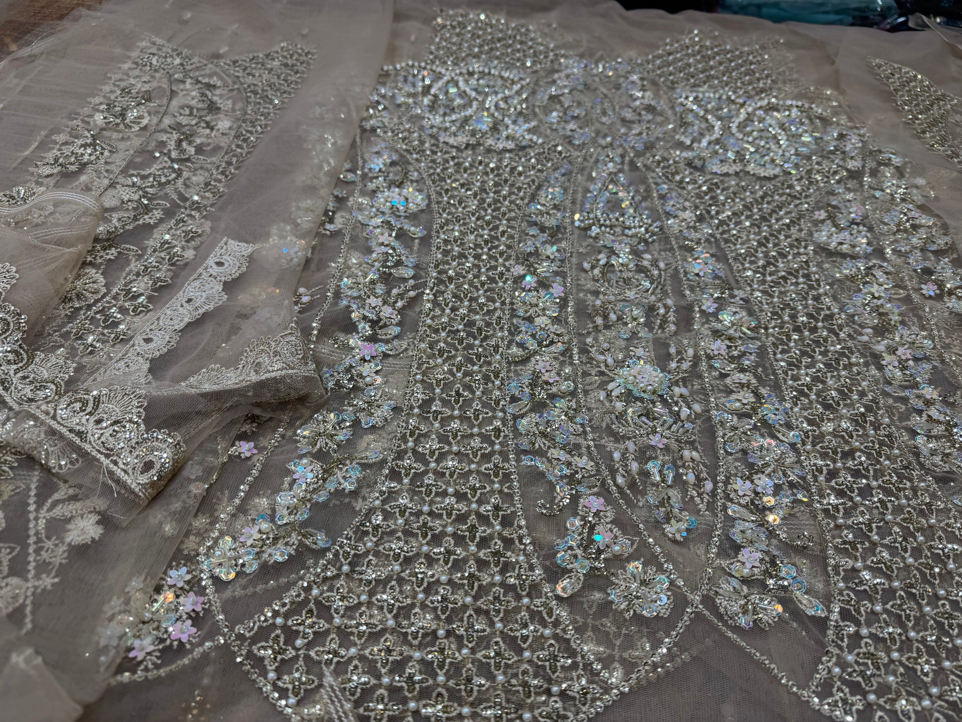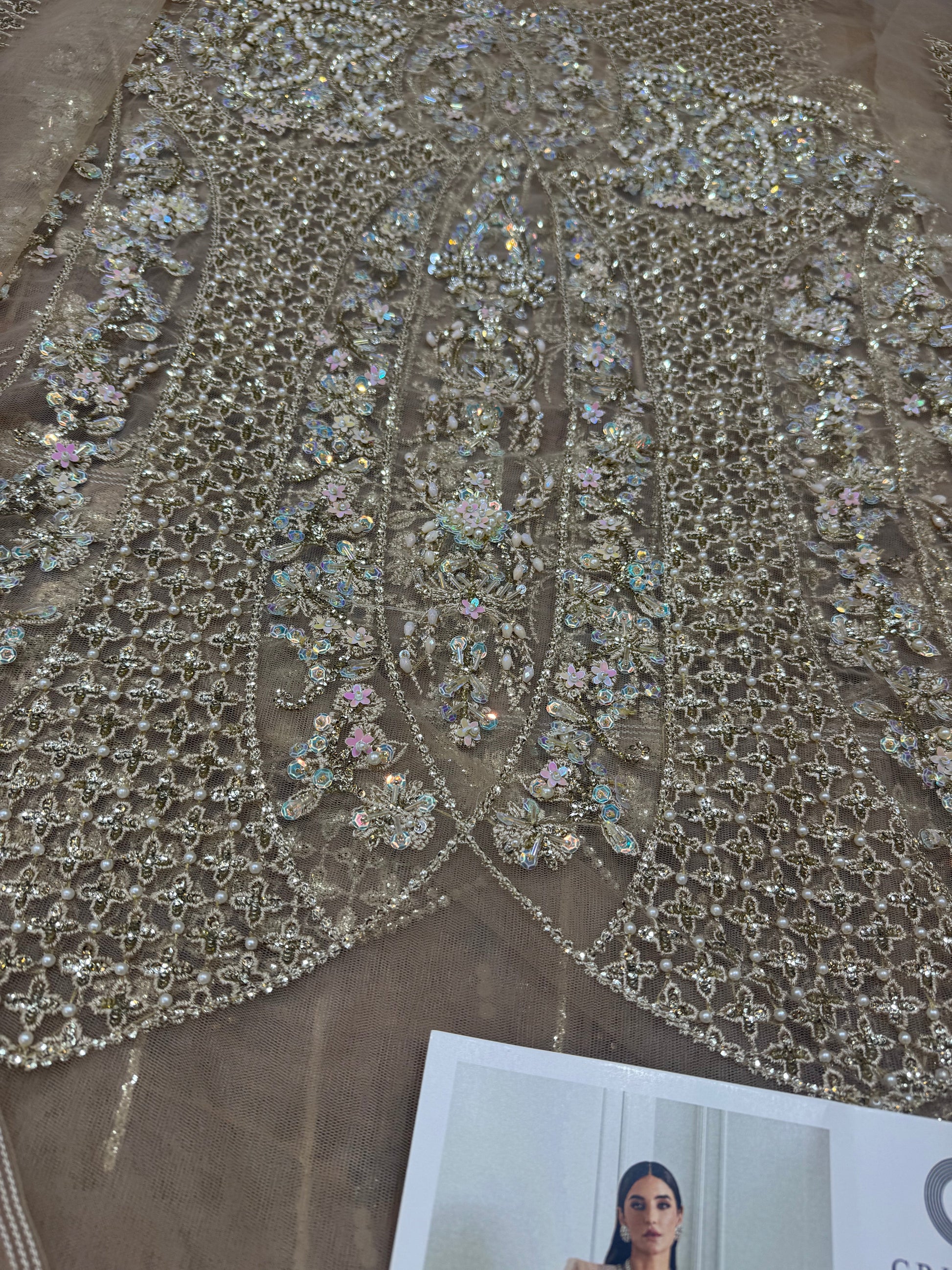 4.75 Meters Sequined, Embroidered And Crystal Encrusted Sharara Fabric On Tulle