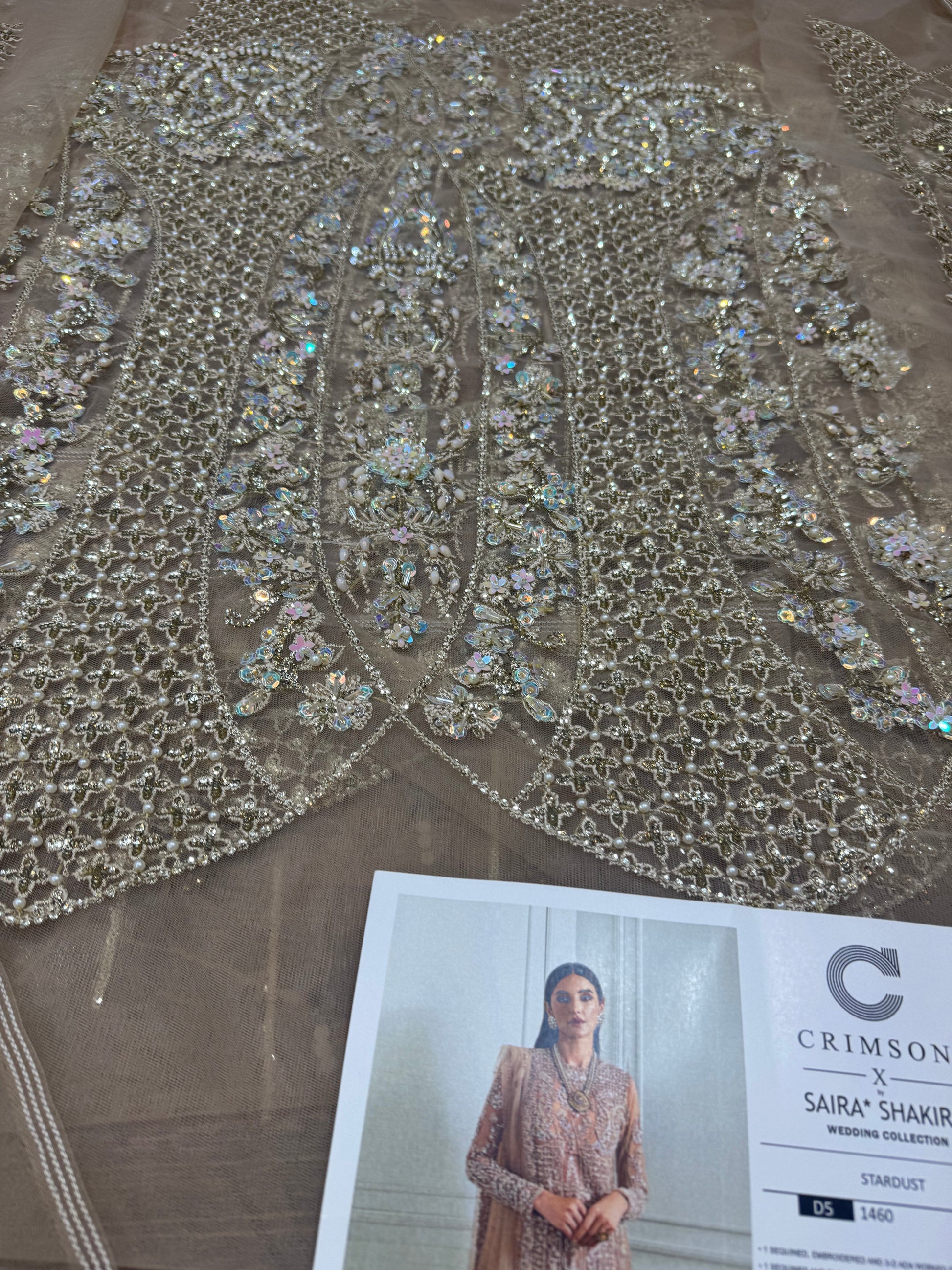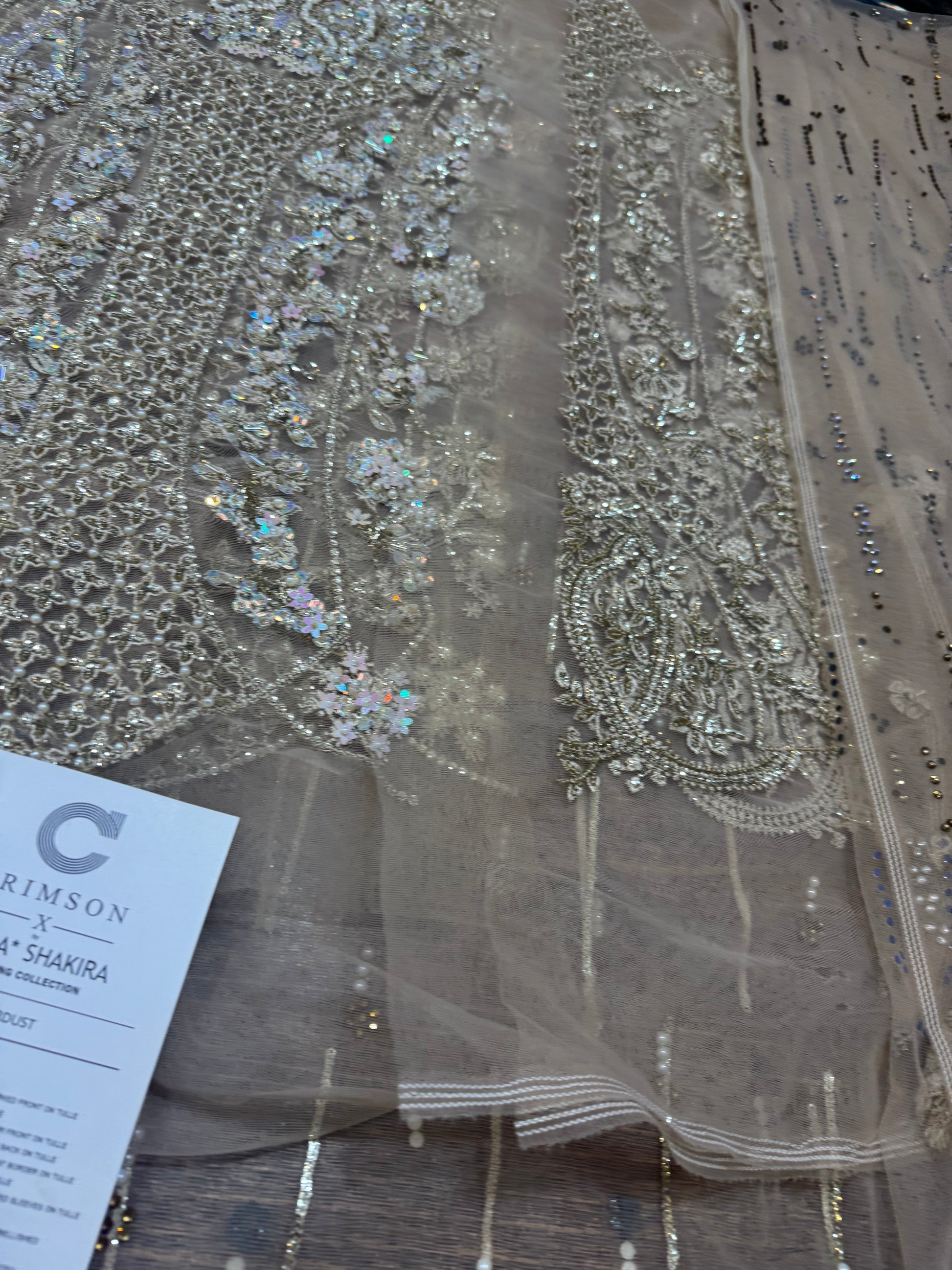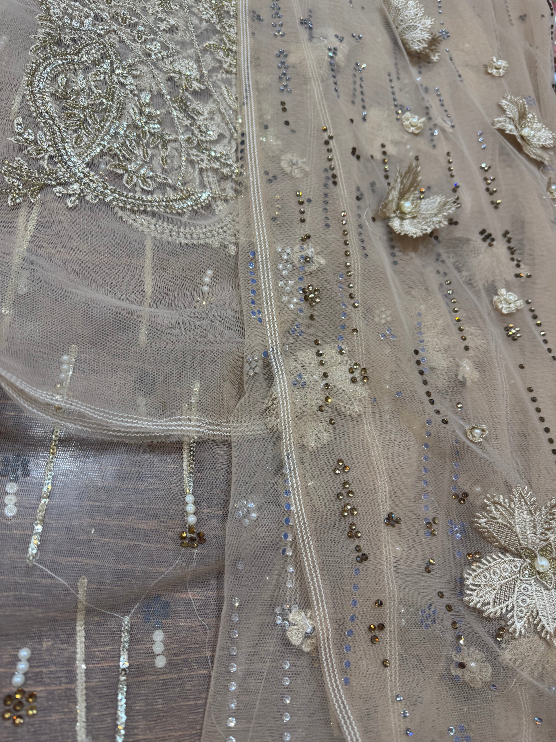 4.75 Meters Sequined, Embroidered And Crystal Encrusted Sharara Fabric On Tulle