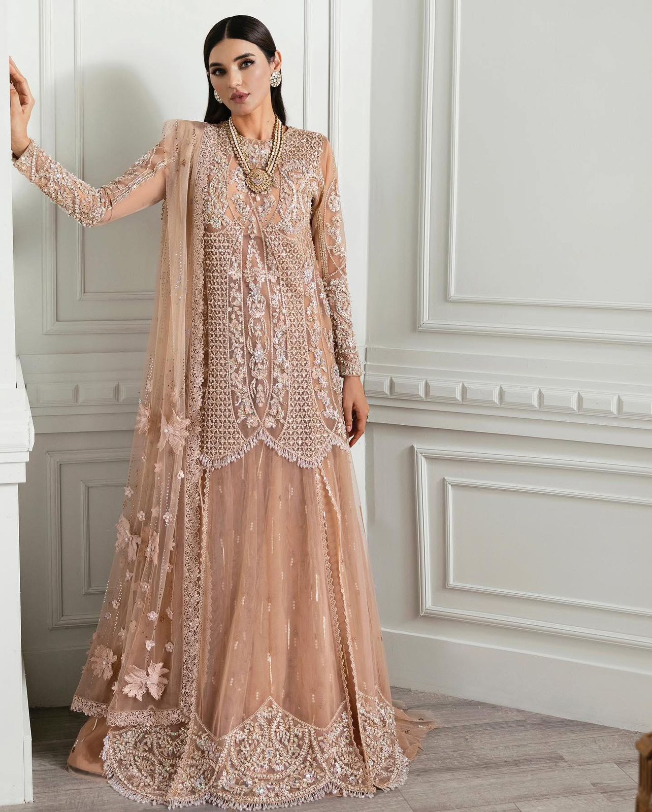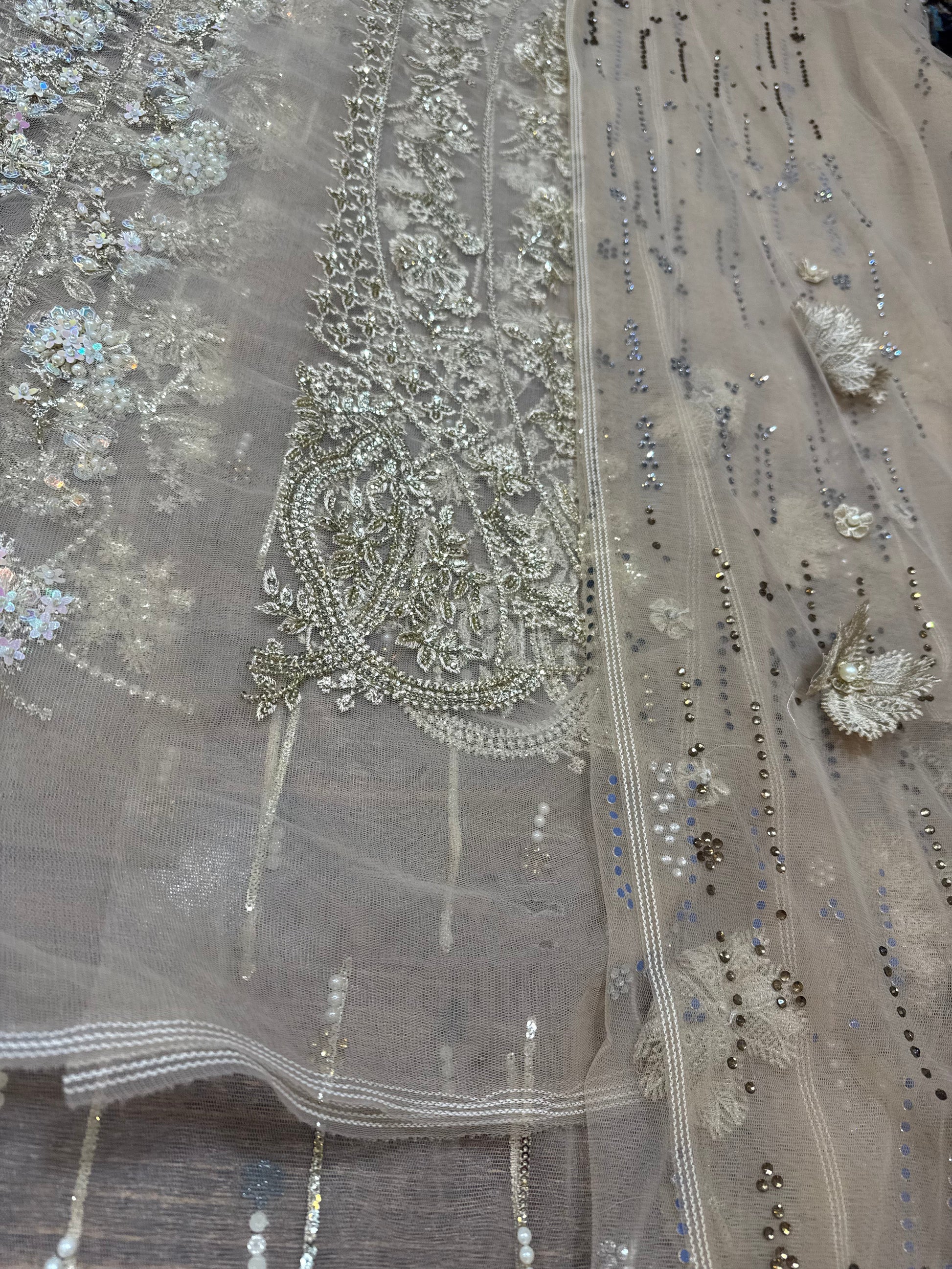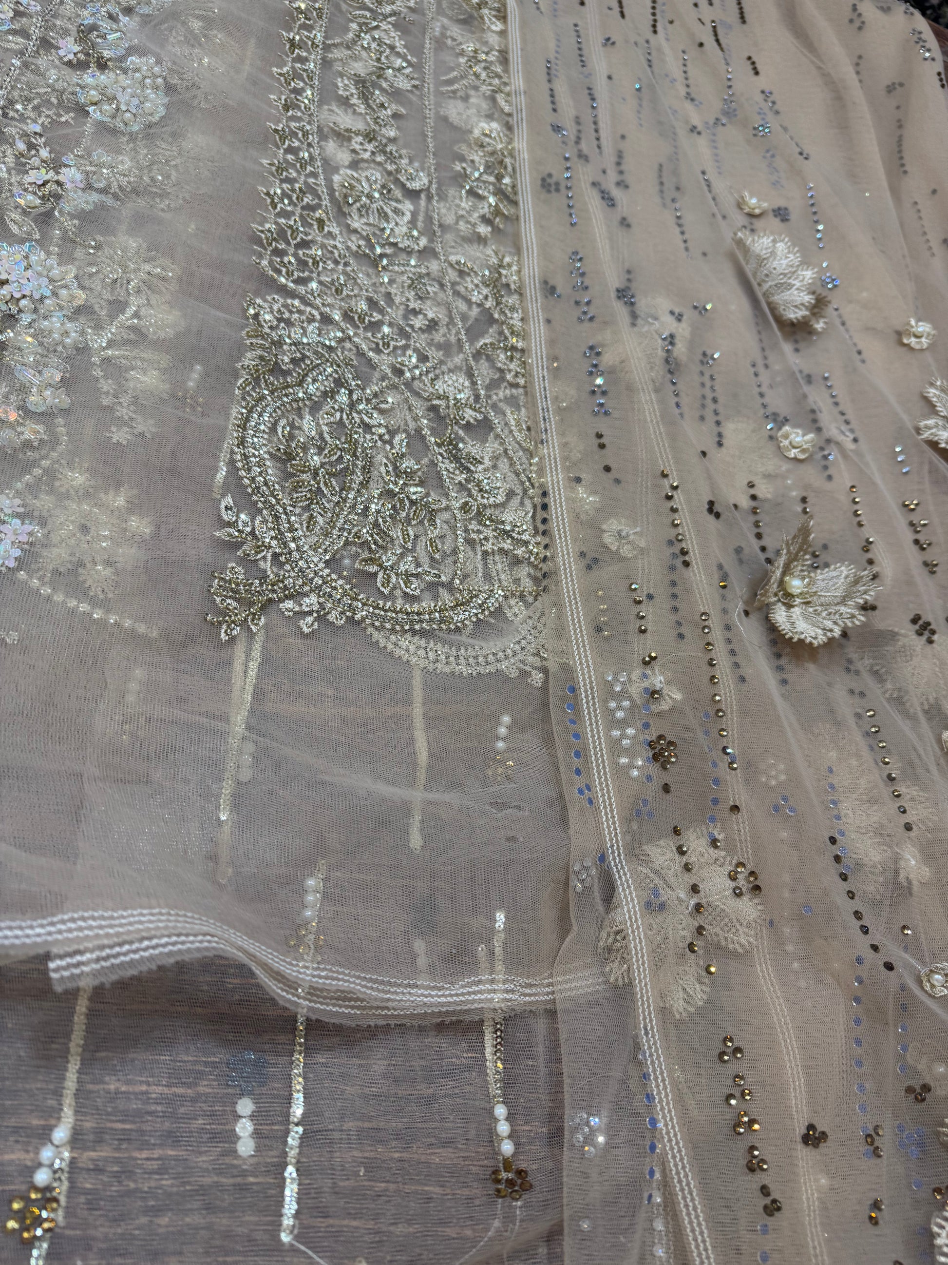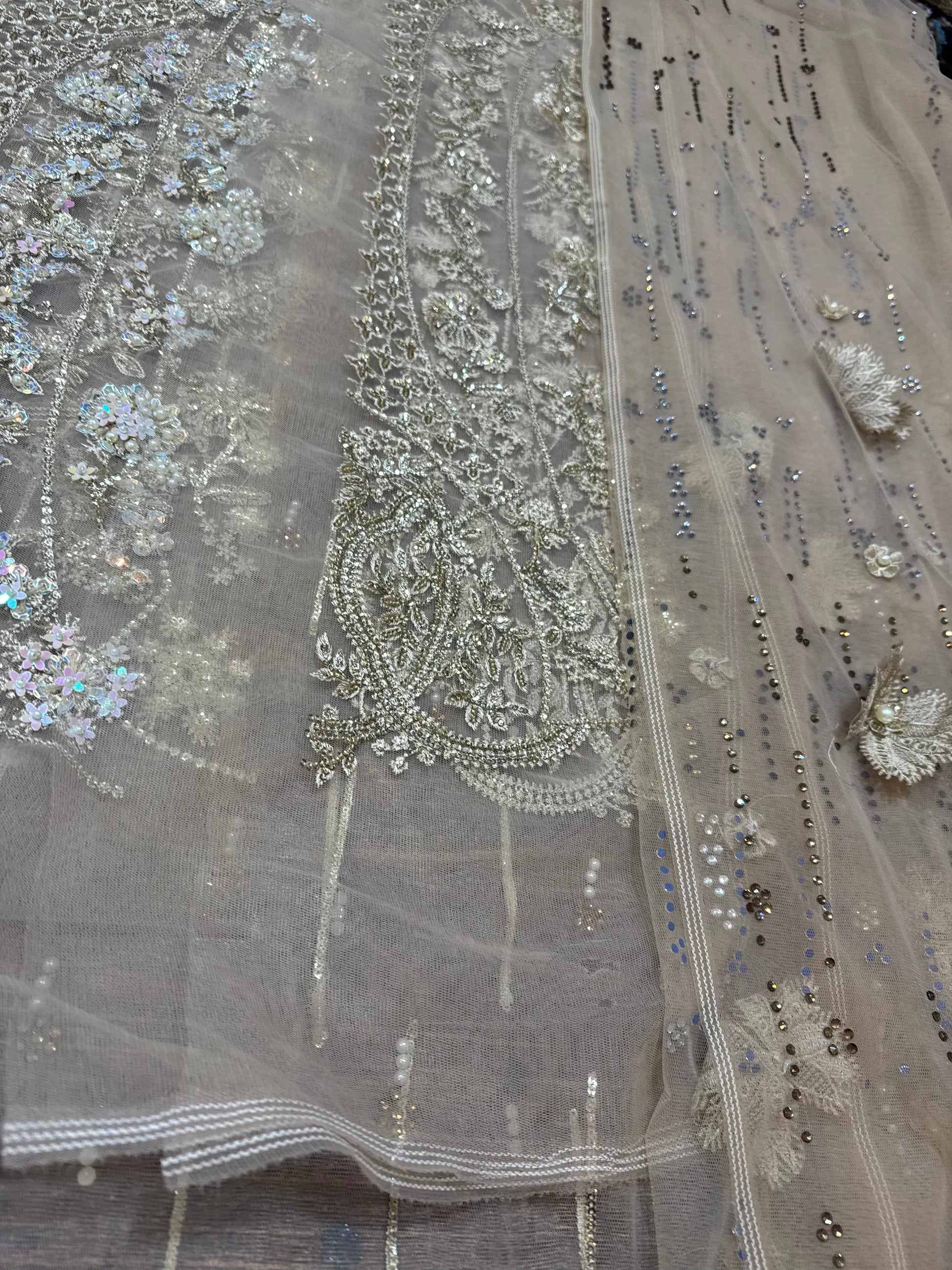 4.75 Meters Sequined, Embroidered And Crystal Encrusted Sharara Fabric On Tulle