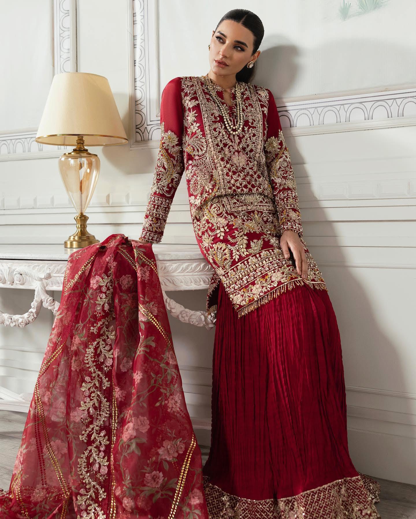 The Artisian story by Crimson X Siara Shakira features exquisite hand and sequence embroidery, adding a touch of luxury and craftsmanship to your wardrobe. Skilled artisans have carefully crafted this garment for a truly unique and timeless piece. Elevate your style with this beautiful creation.