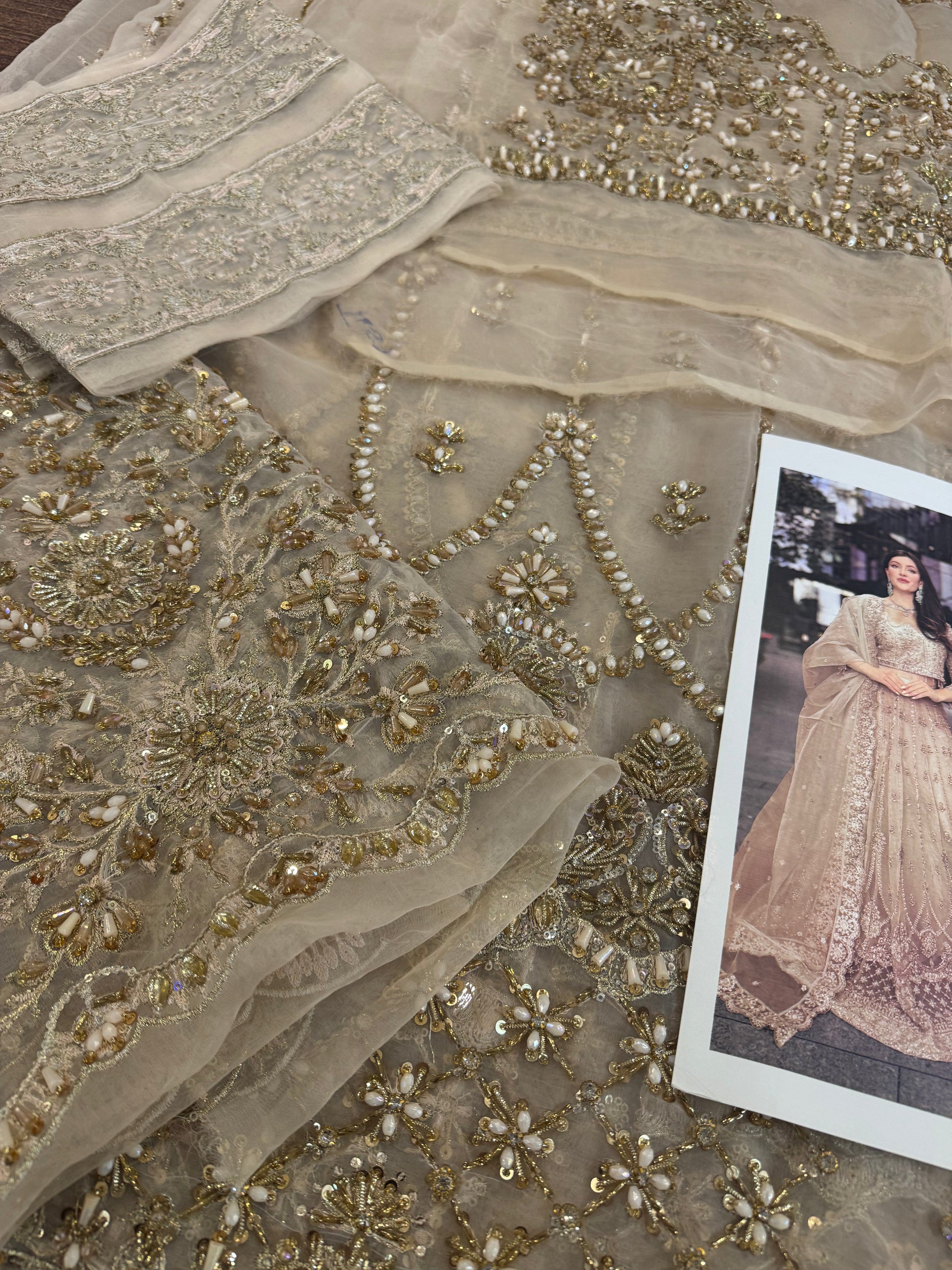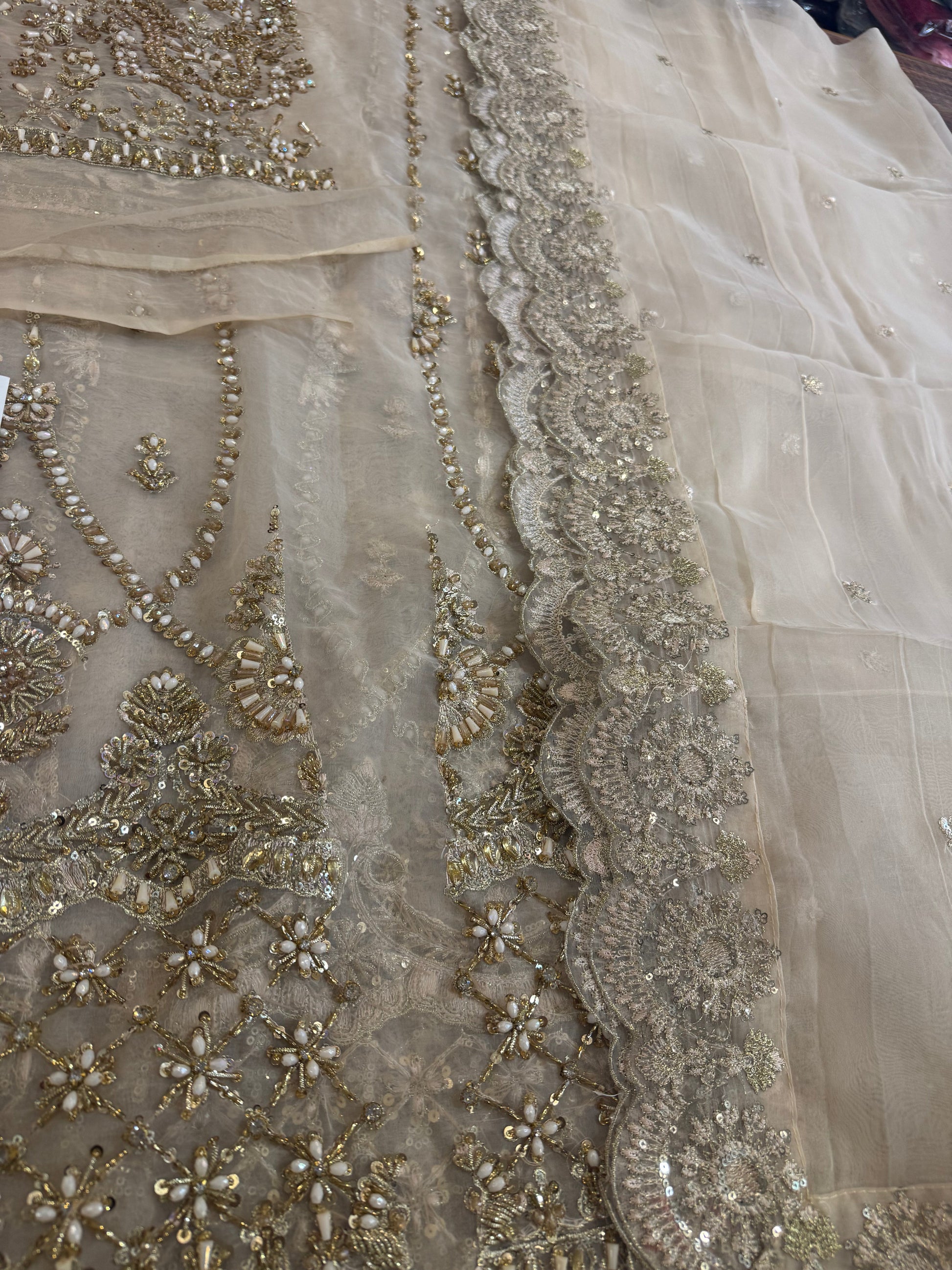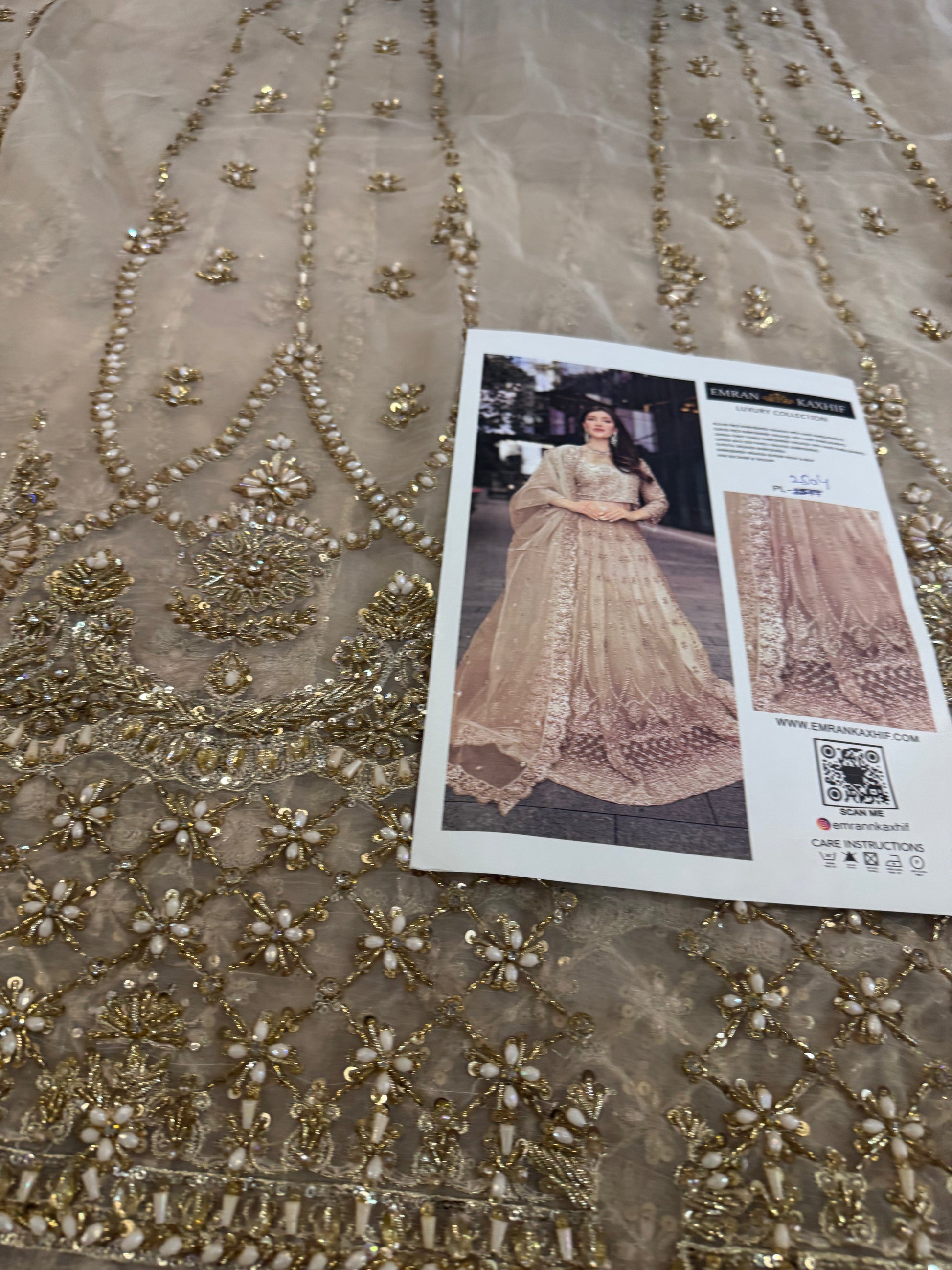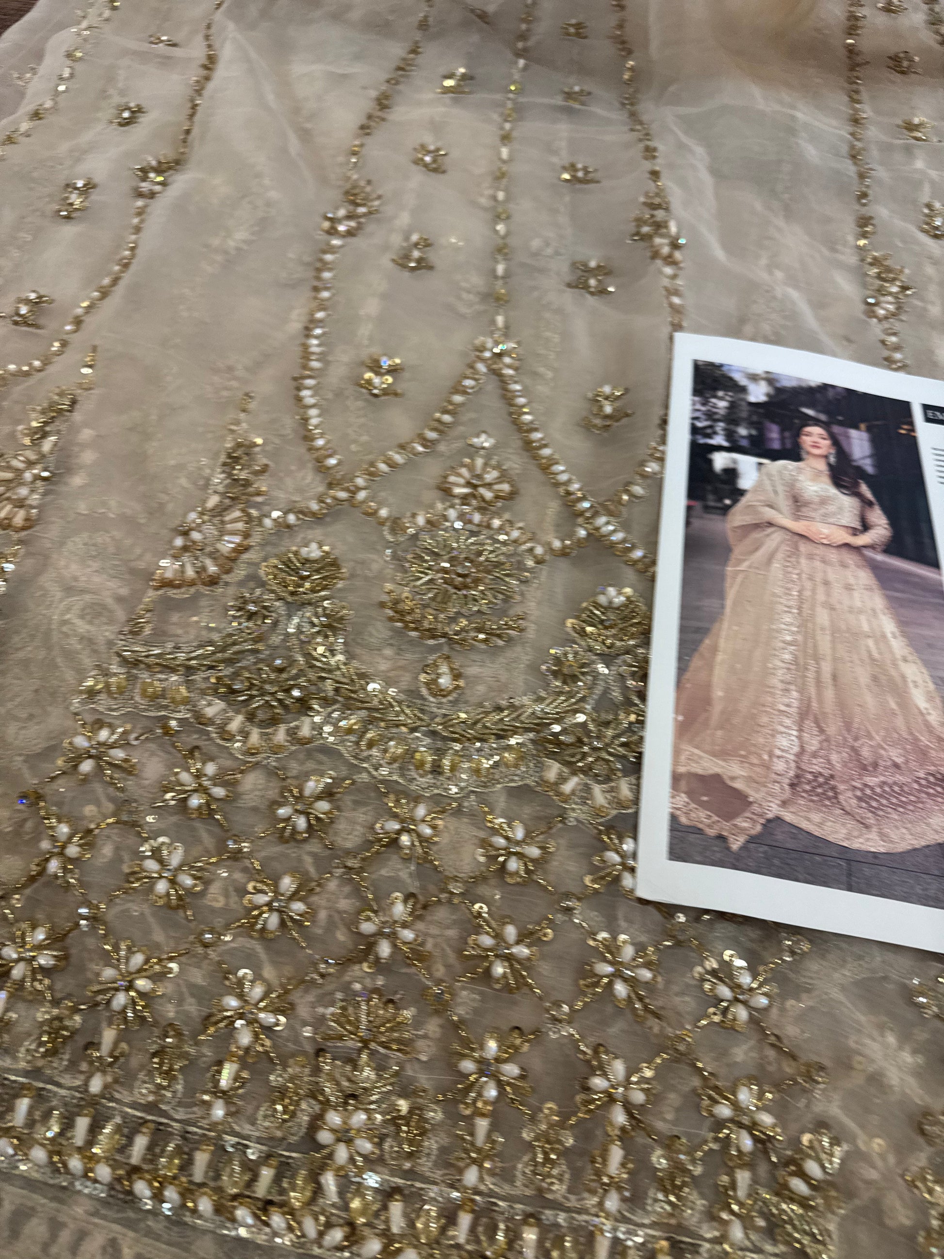 "Skin Gold is the ultimate wedding dress, featuring stunning hand and sequence embroidery. With intricate details and luxurious fabric, this dress will make you feel like a true queen on your special day. Radiate elegance and sophistication with Skin Gold."