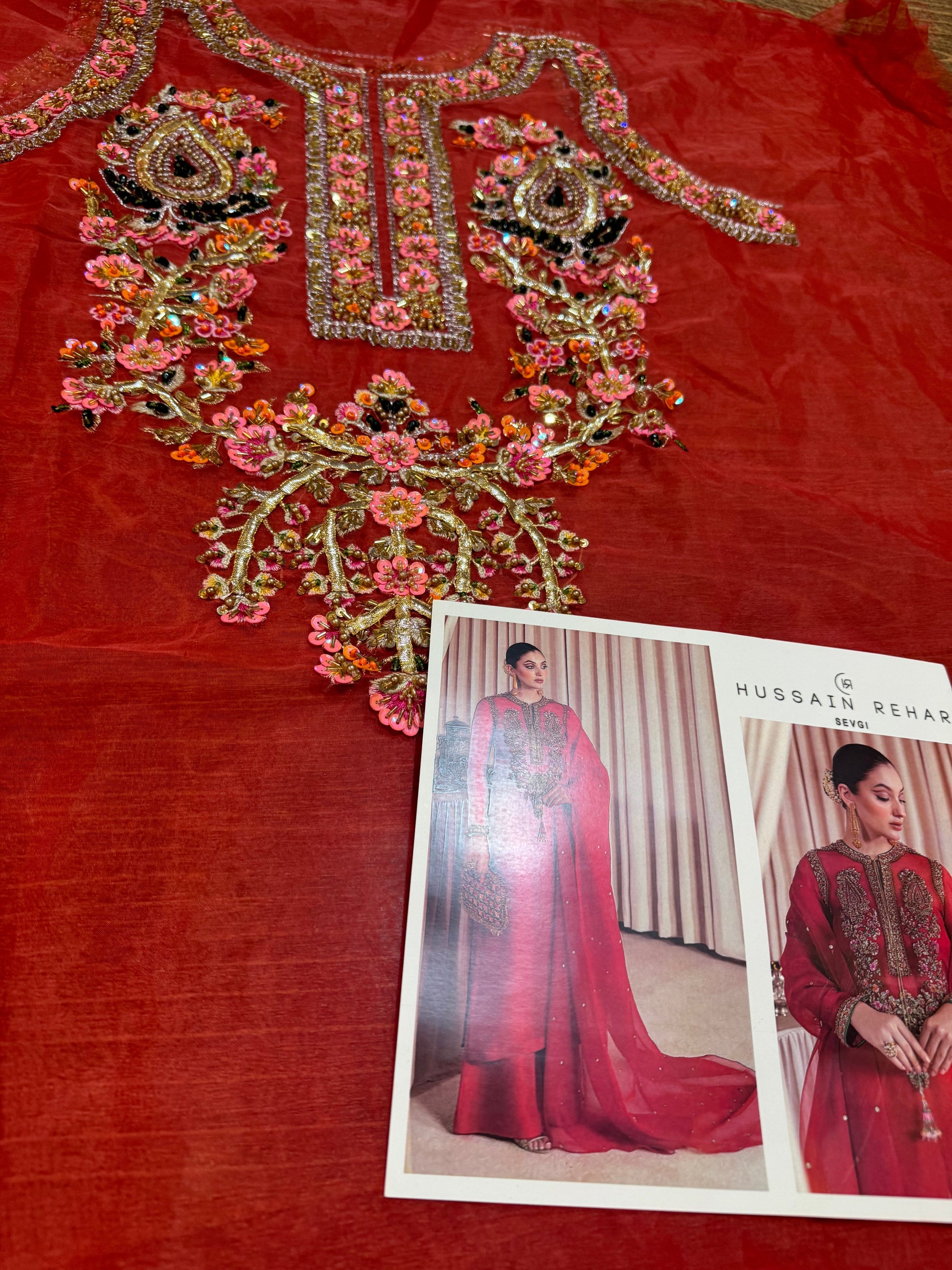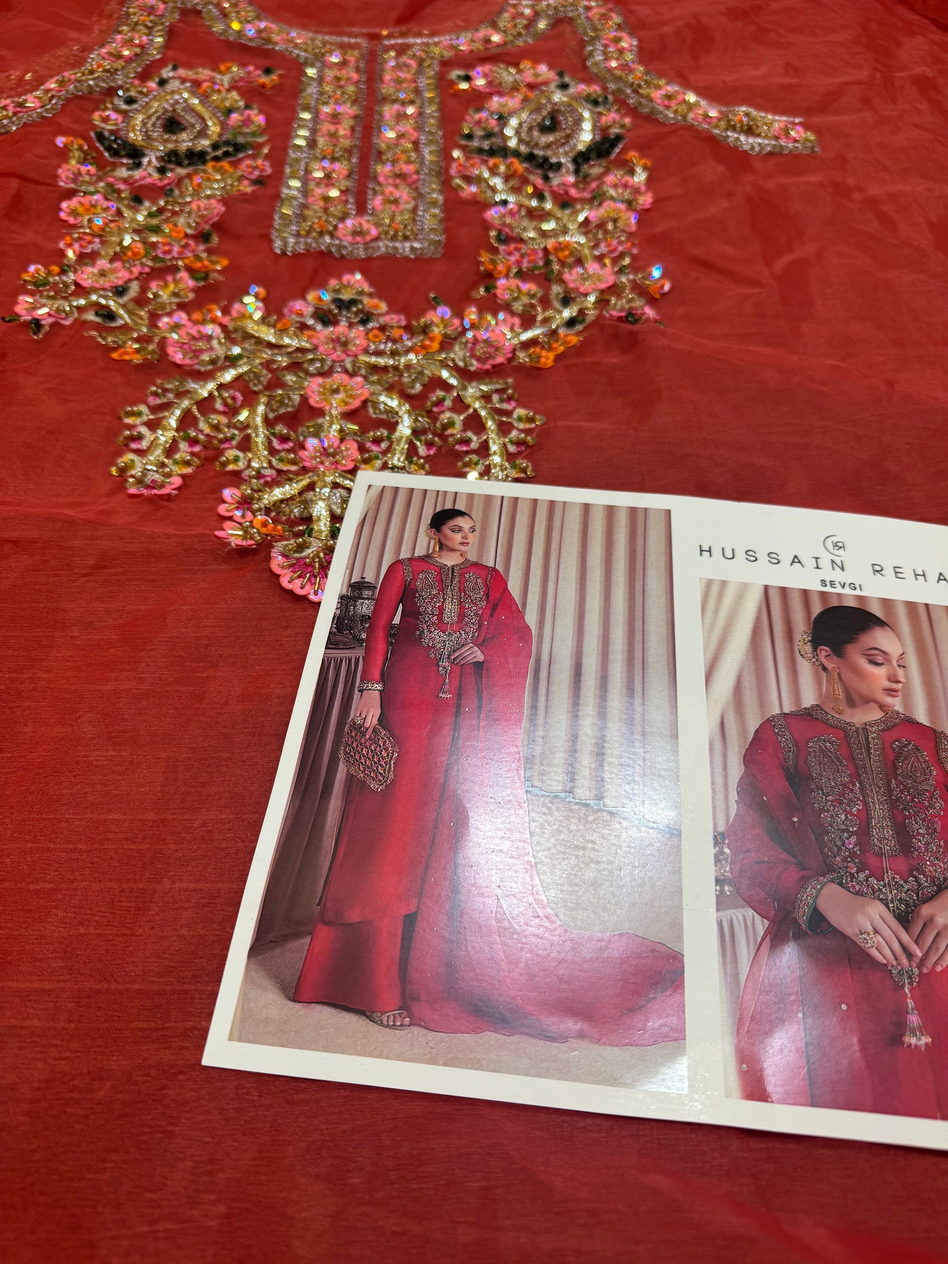 Hussain Rehar red bridal chiffon wedding edition