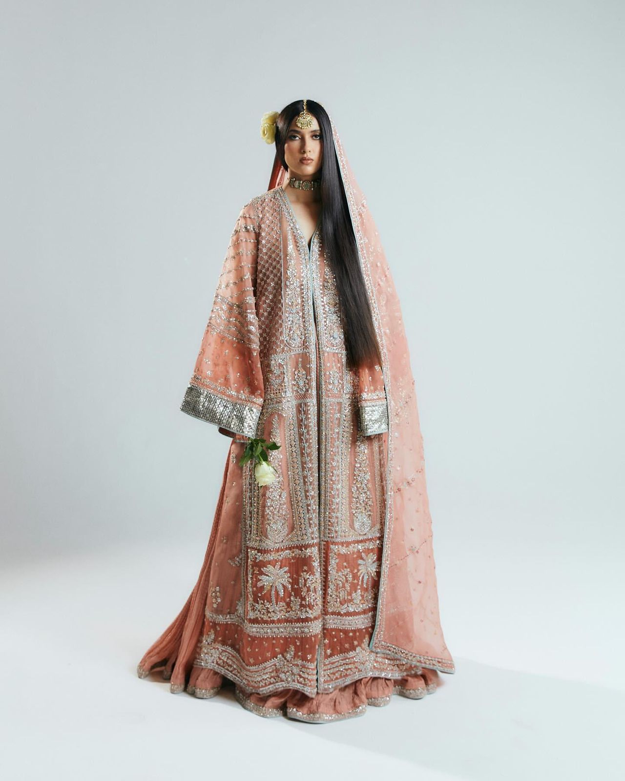 Hussain rehar white peach pink wedding edition