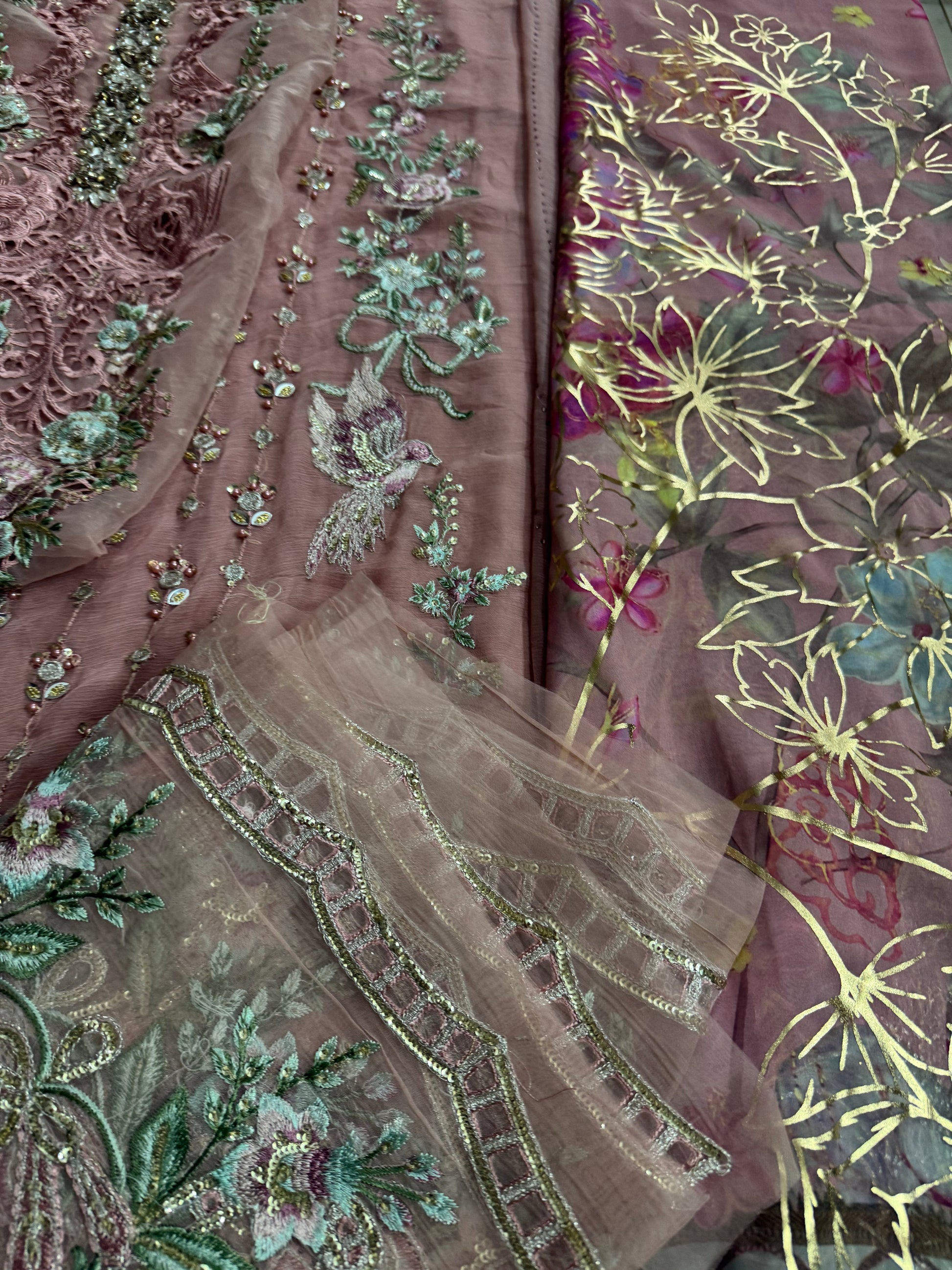 Embroidered Chiffon Center Panel With Hand Embellishment
