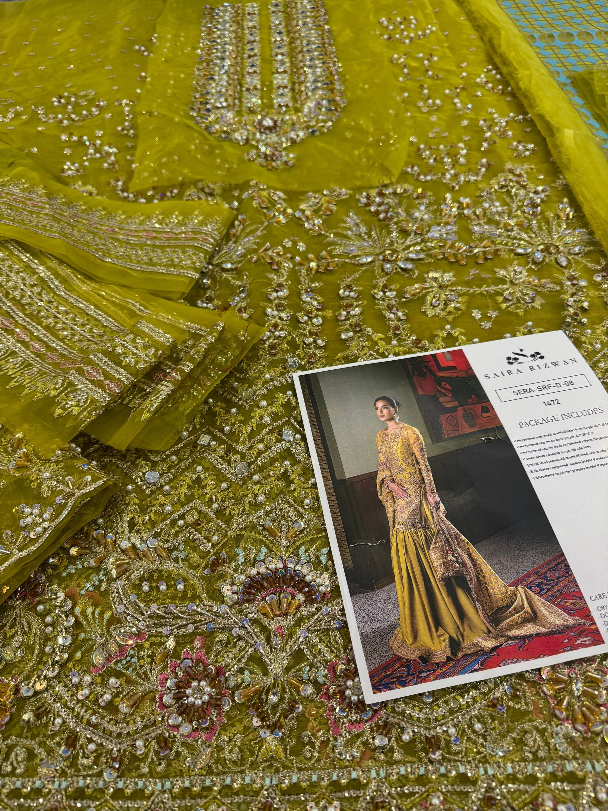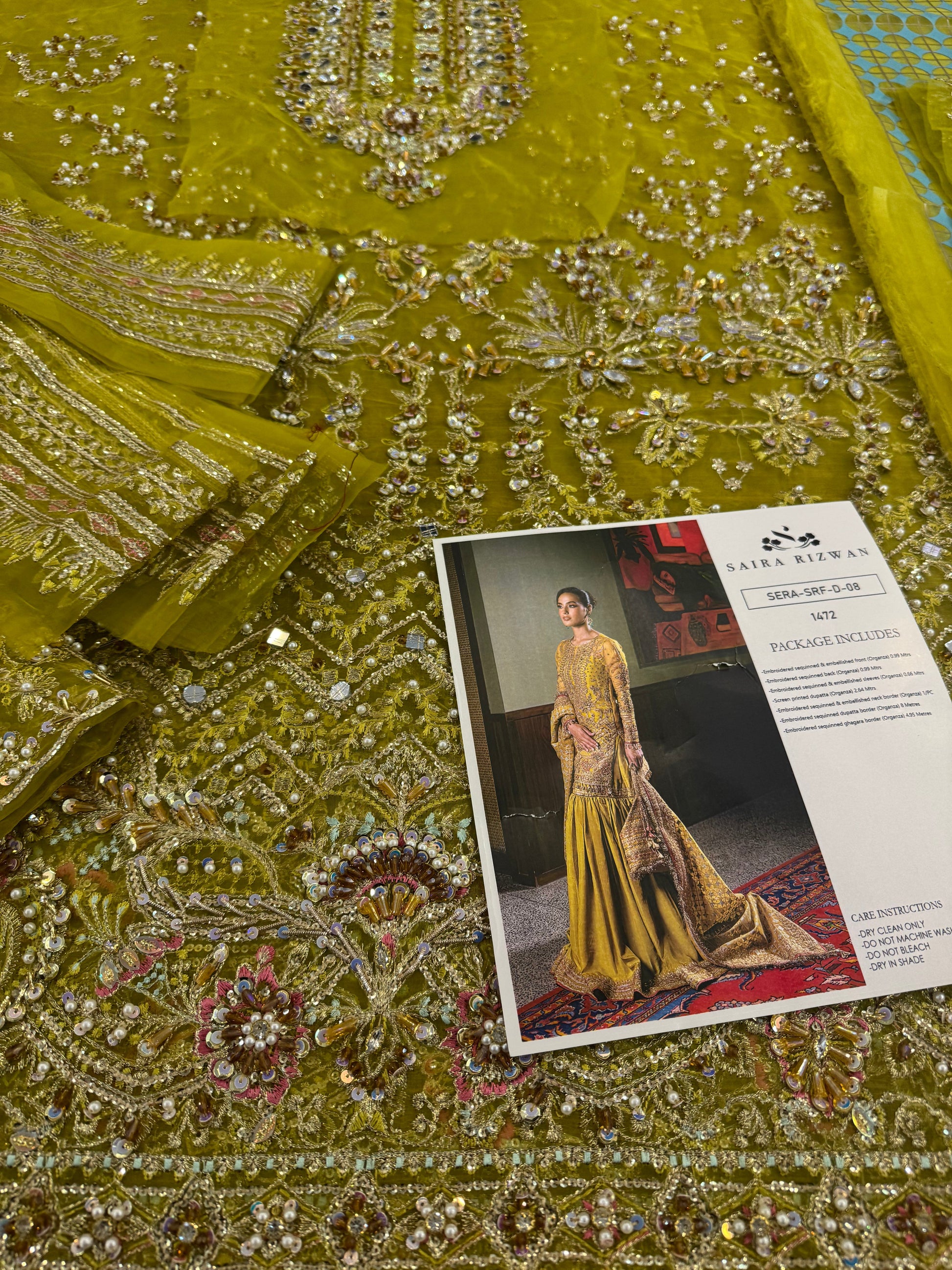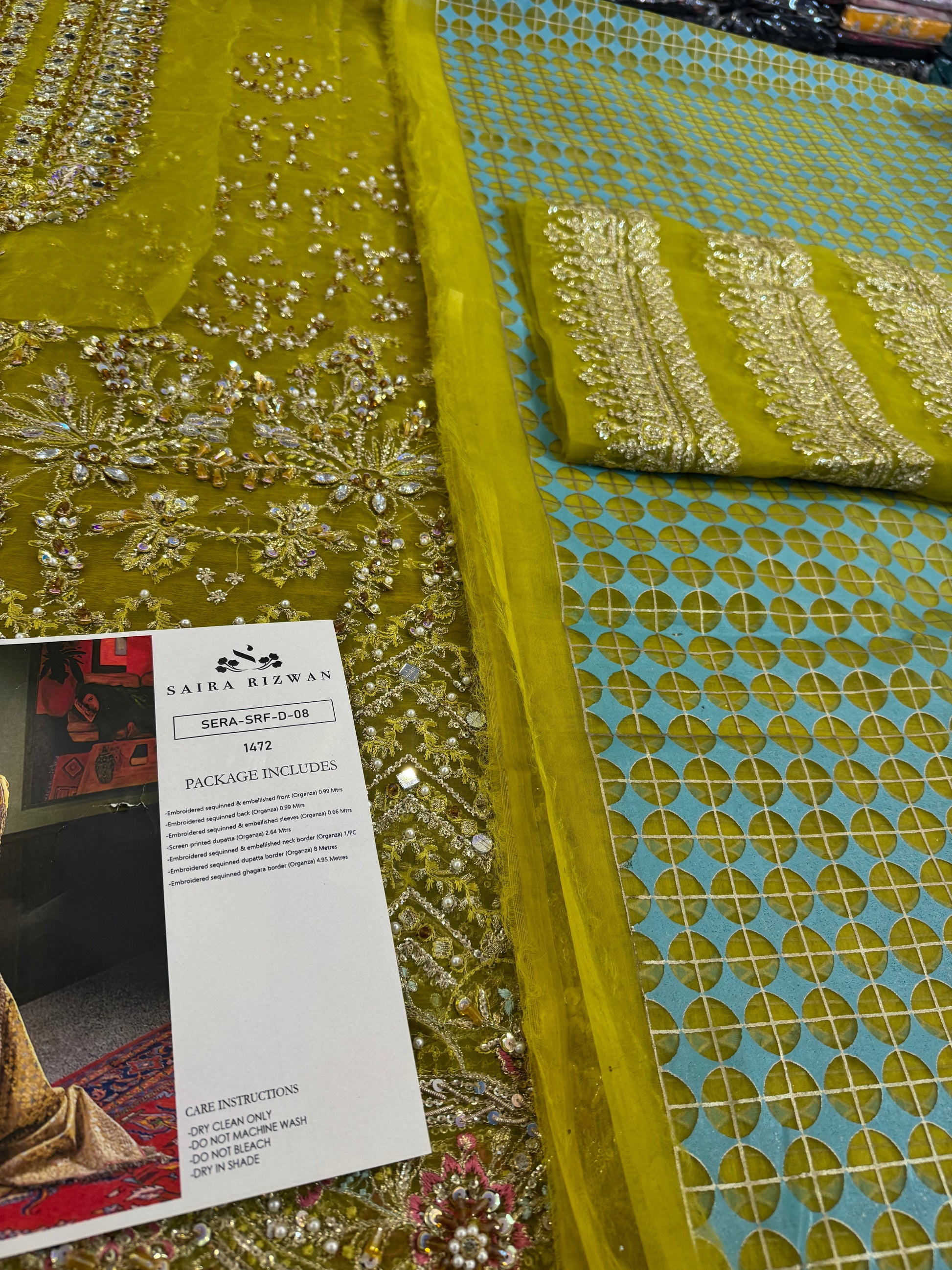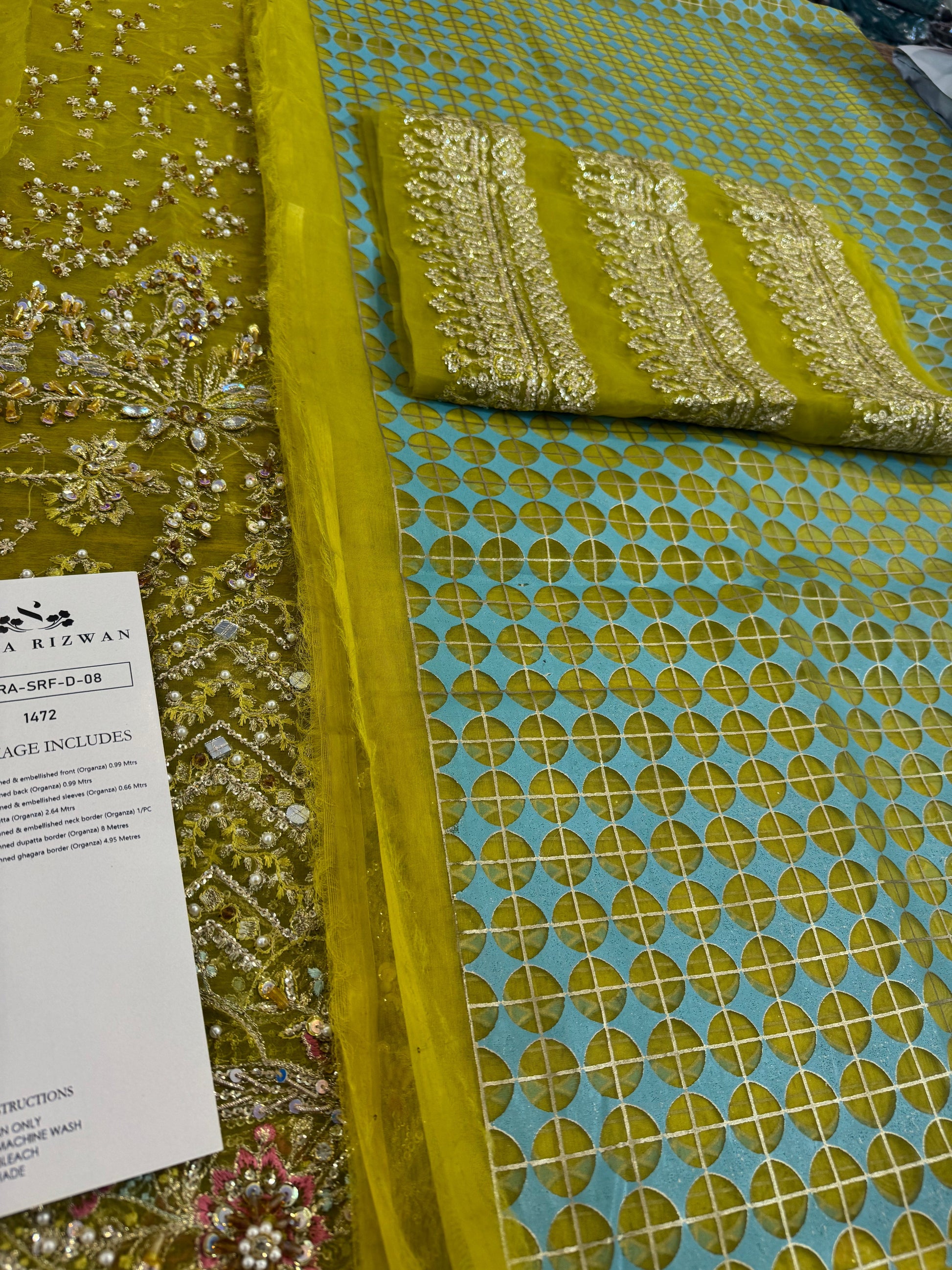 Embroidered sequinned & embellished front (Organza) 0.99 Metres