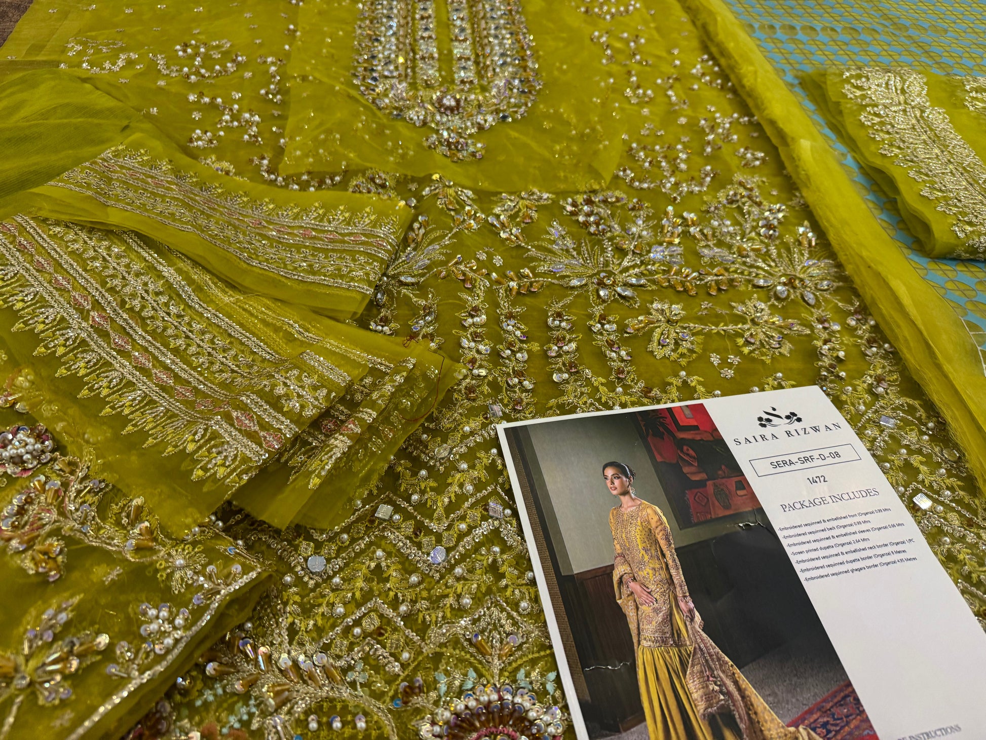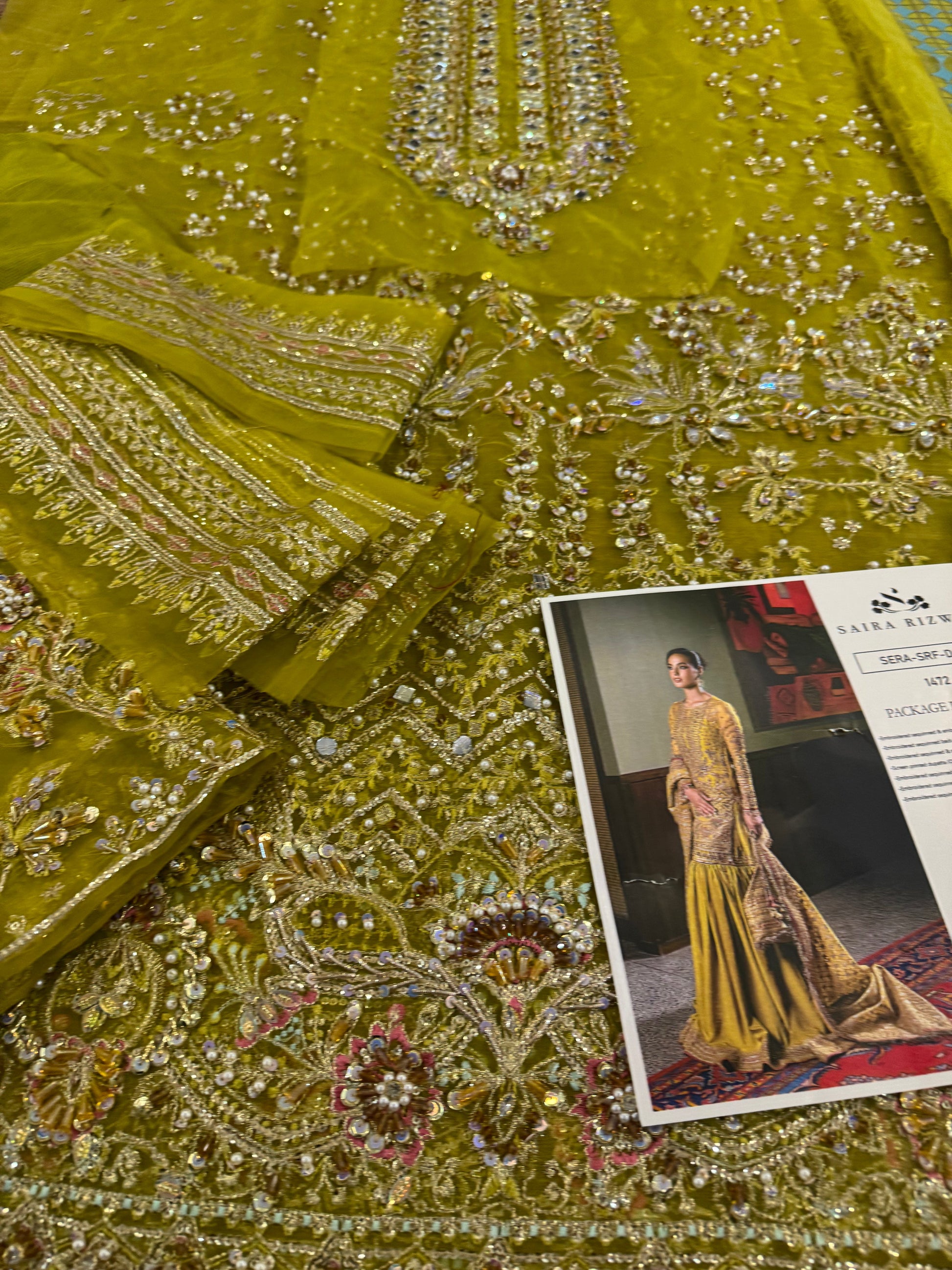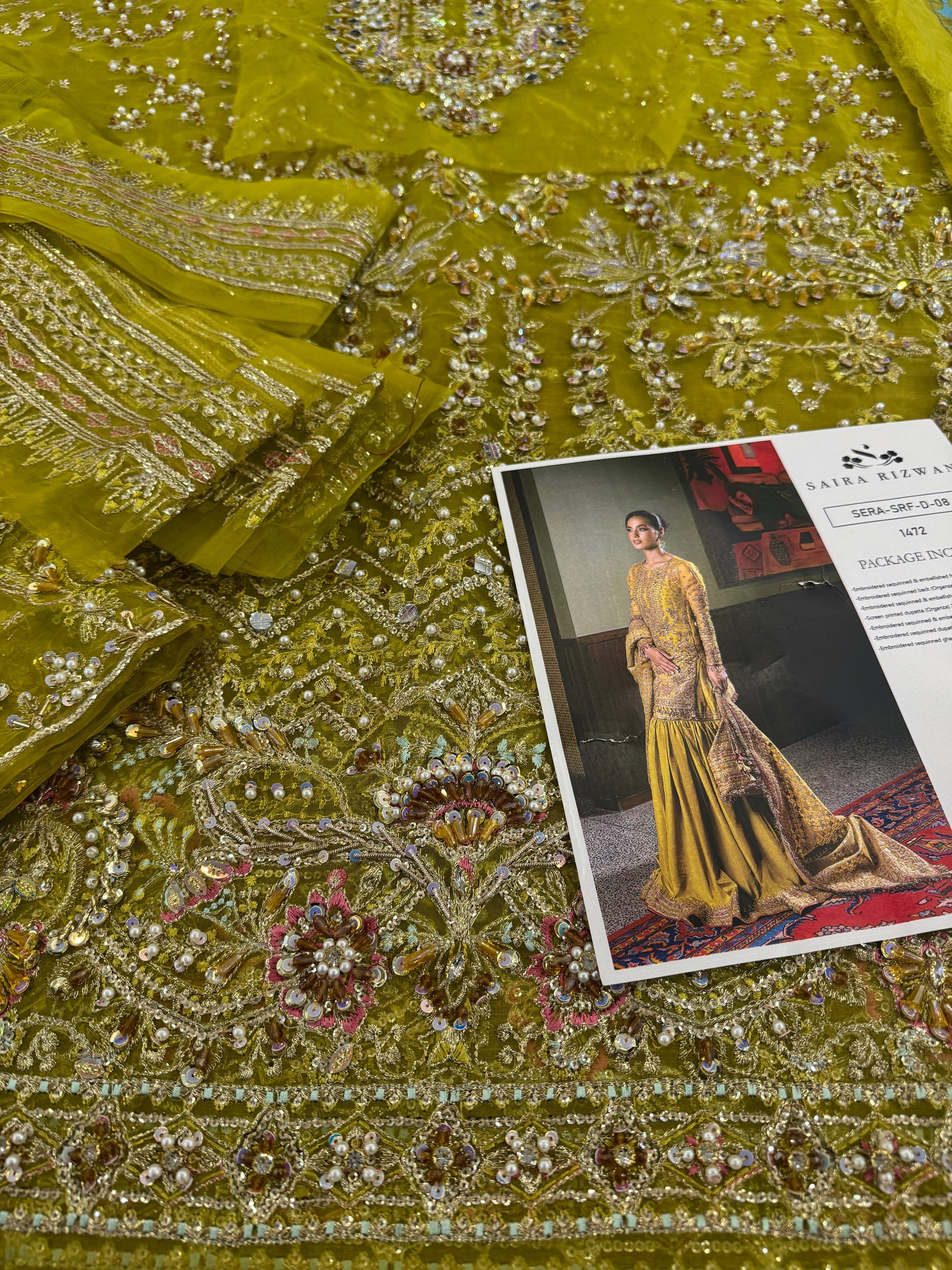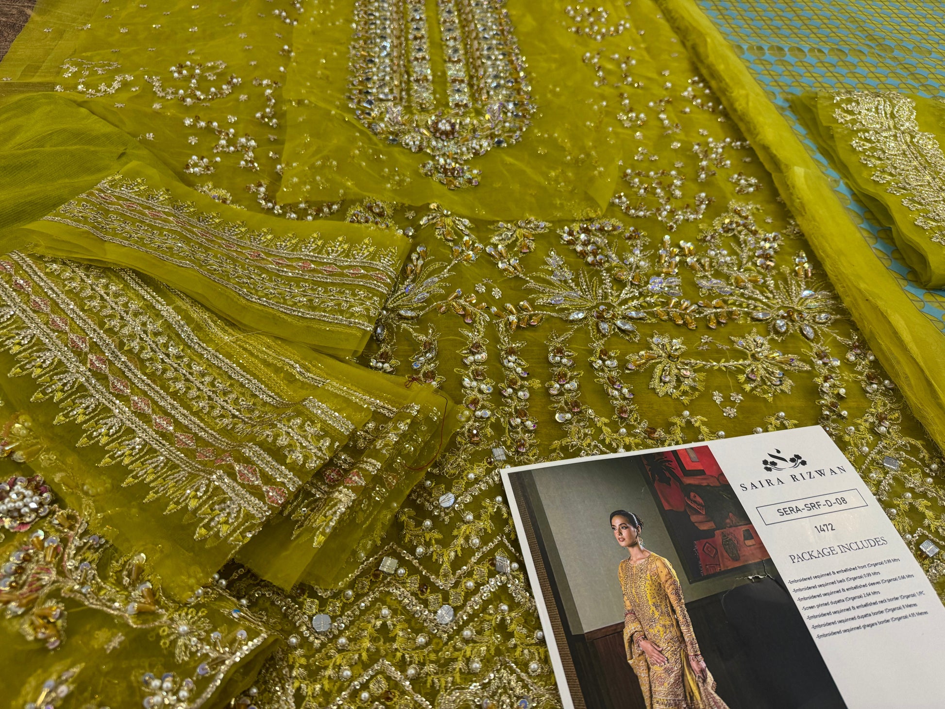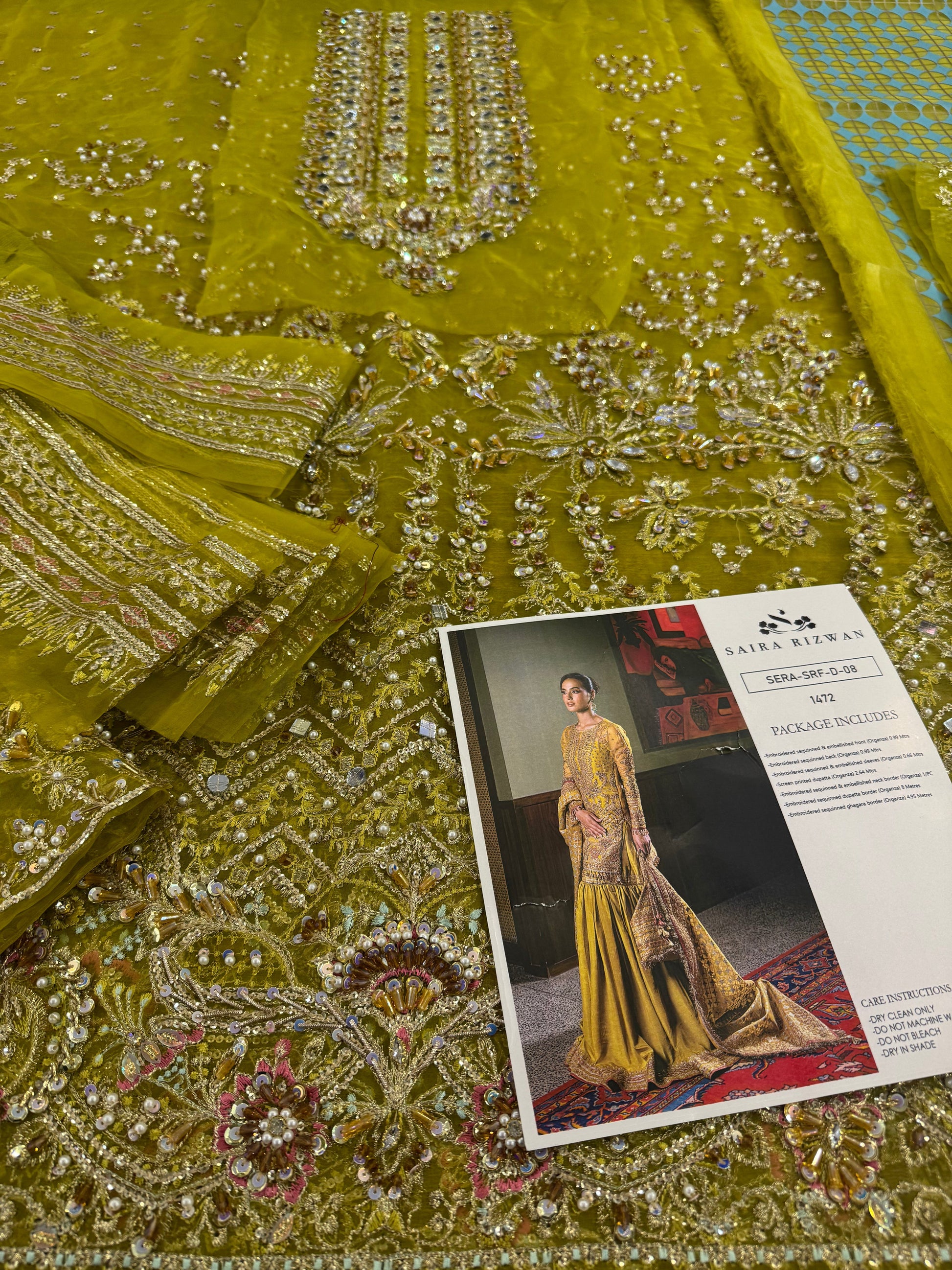 Embroidered sequinned & embellished front (Organza) 0.99 Metres