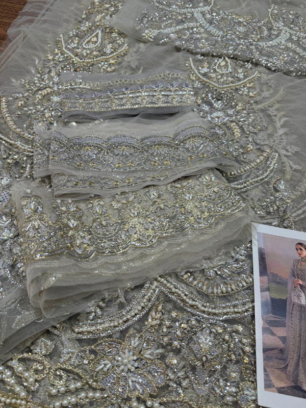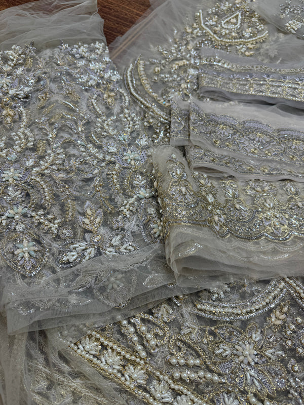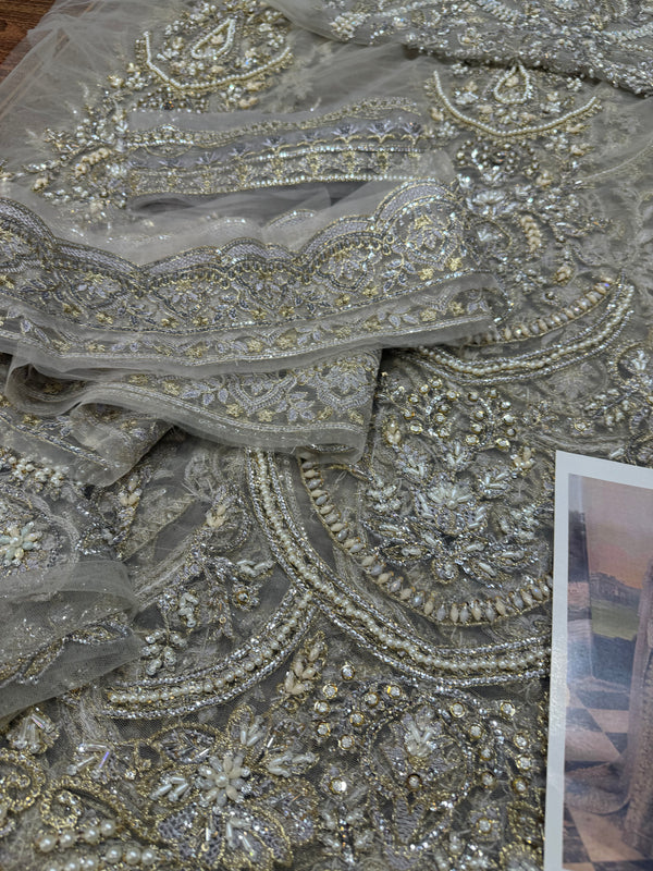Completing the ensemble is the Organza Dupatta, delicately adorned with a spray and